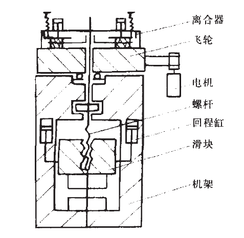 摩擦壓力機的主要問題是電機需帶動摩擦盤始終高速旋轉,而飛輪在一個循環(huán)中還需改變旋轉方向,在換向時飛輪和摩擦盤產生嚴重打滑。這不但降低了傳動效率,也加劇了摩擦帶的磨損,從而增加了制造和維修費用,未能得到廣泛應用。摩擦壓力機效率低,打擊力控制不精確,不適于大噸位。